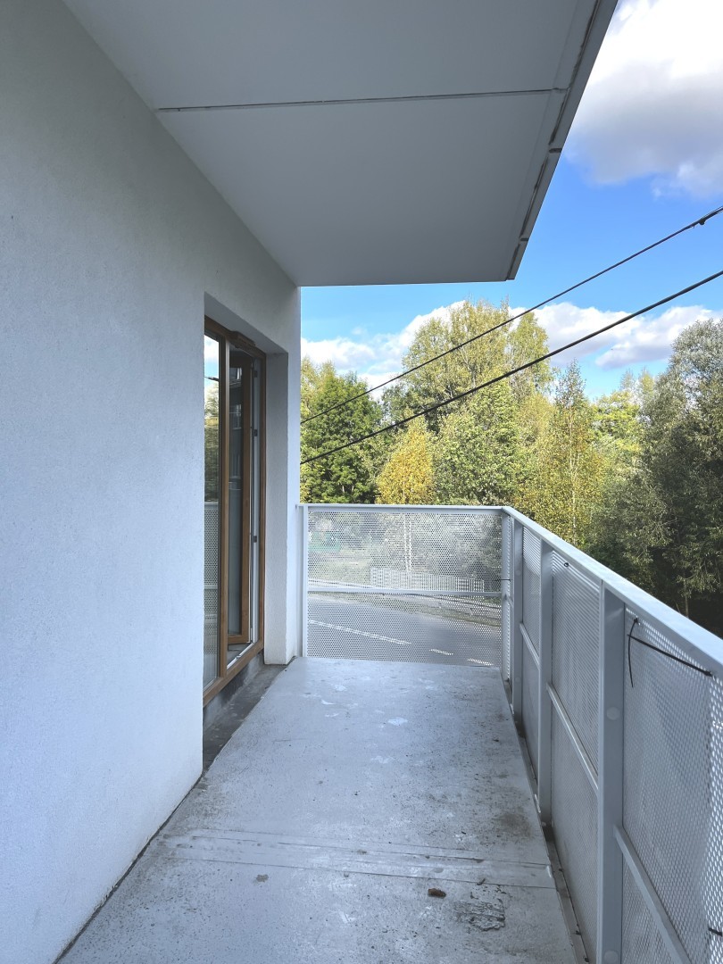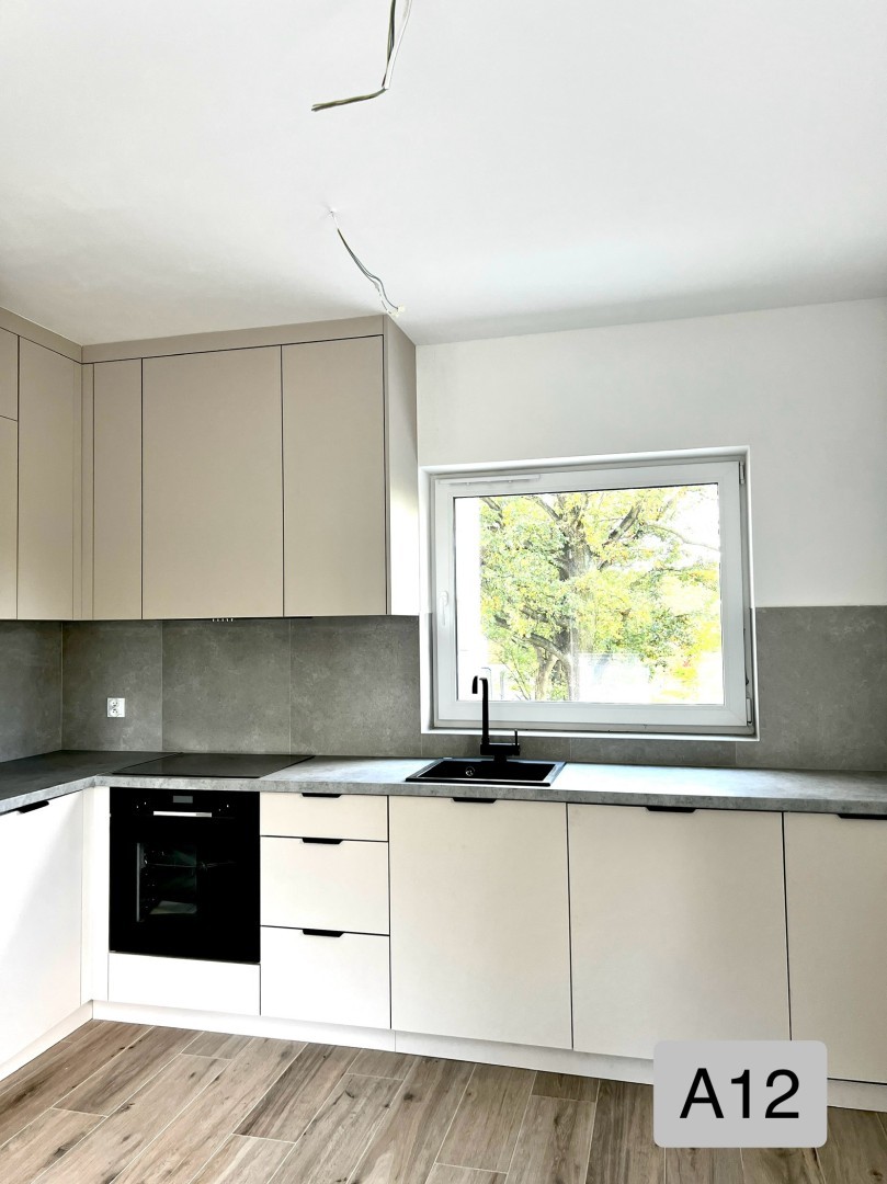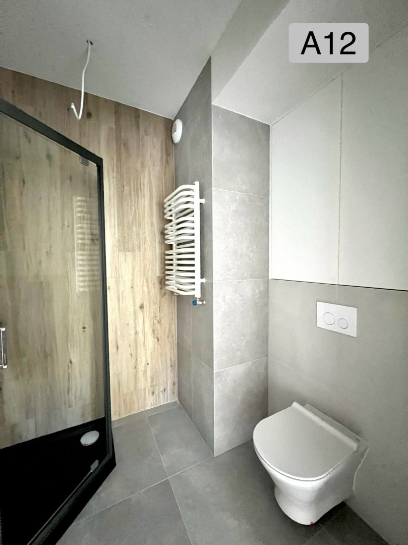 Z kolei mieszkanie A12 oferuje przestronny układ dwóch pokoi oraz duży balkon, z którego można podziwiać zieloną okolicę. Podobnie jak A9, jest częściowo wykończone i wyposażone w nowoczesną kuchnię oraz elegancką łazienkę. To idealne rozwiązanie dla tych, którzy pragną przestrzeni na świeżym powietrzu, ale wolą balkon zamiast ogródka.