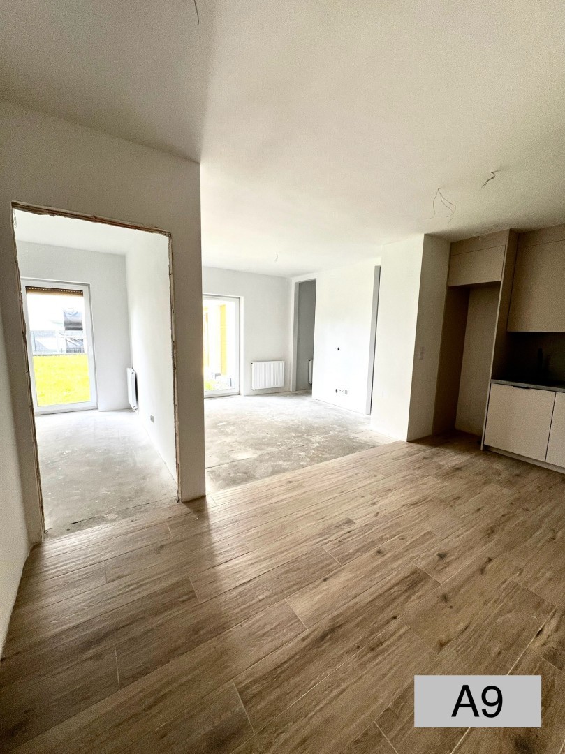 Mieszkanie A9 to 2-pokojowy lokal, który wyróżnia się przestronnym ogródkiem – doskonałym miejscem na relaks lub spotkania z przyjaciółmi. Mieszkanie jest częściowo wykończone, a w jego skład wchodzi w pełni wyposażona kuchnia oraz elegancka, wykończona łazienka. To idealna propozycja dla osób, które cenią sobie prywatność i swobodę, jaką zapewnia własny ogród.