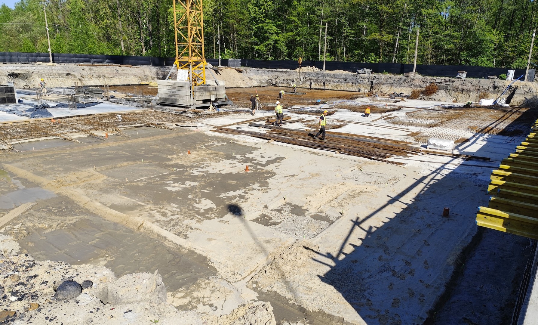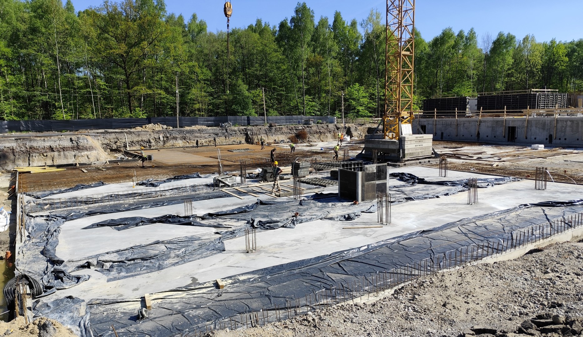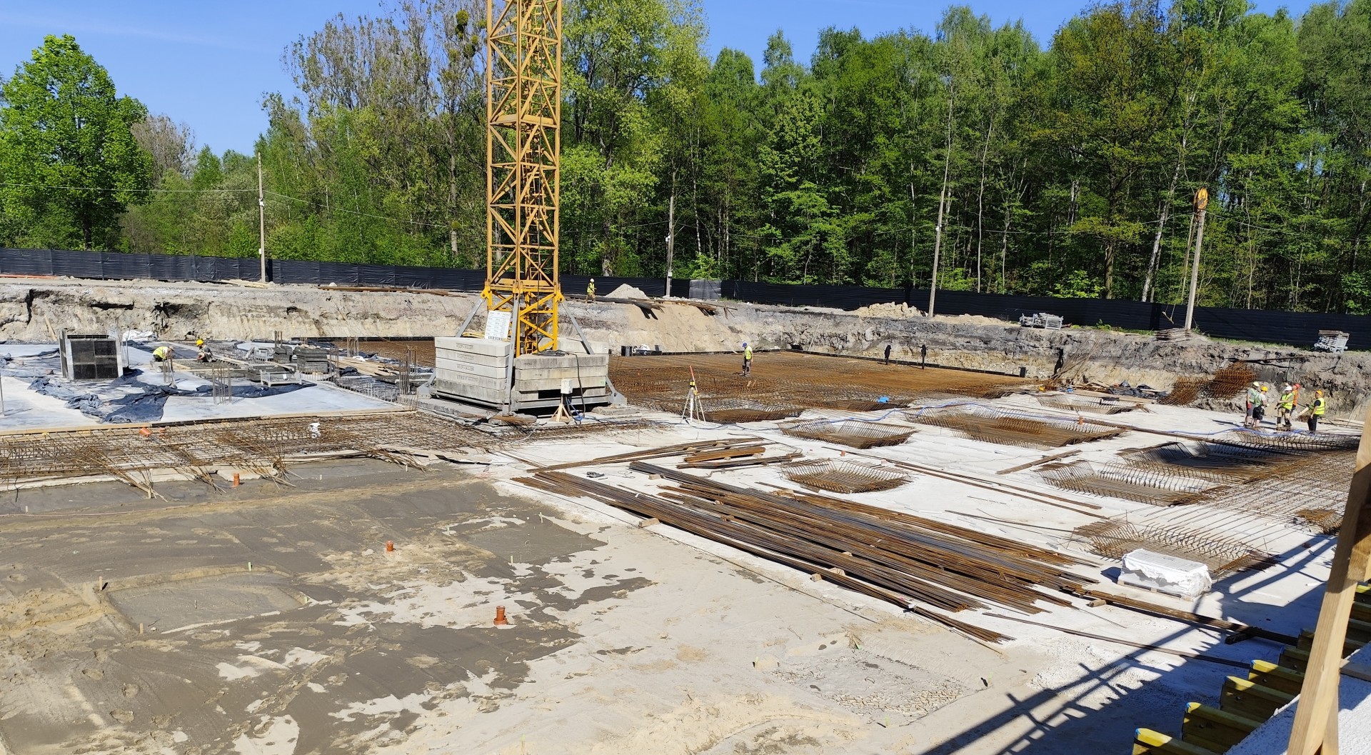 Równolegle w budynku B wykonywane jest zbrojenie oraz instalacja odgromowa, a także wylewana jest płyta fundamentowa. Dodatkowo prowadzone są prace przygotowawcze pod ostatni fragment chudego betonu.