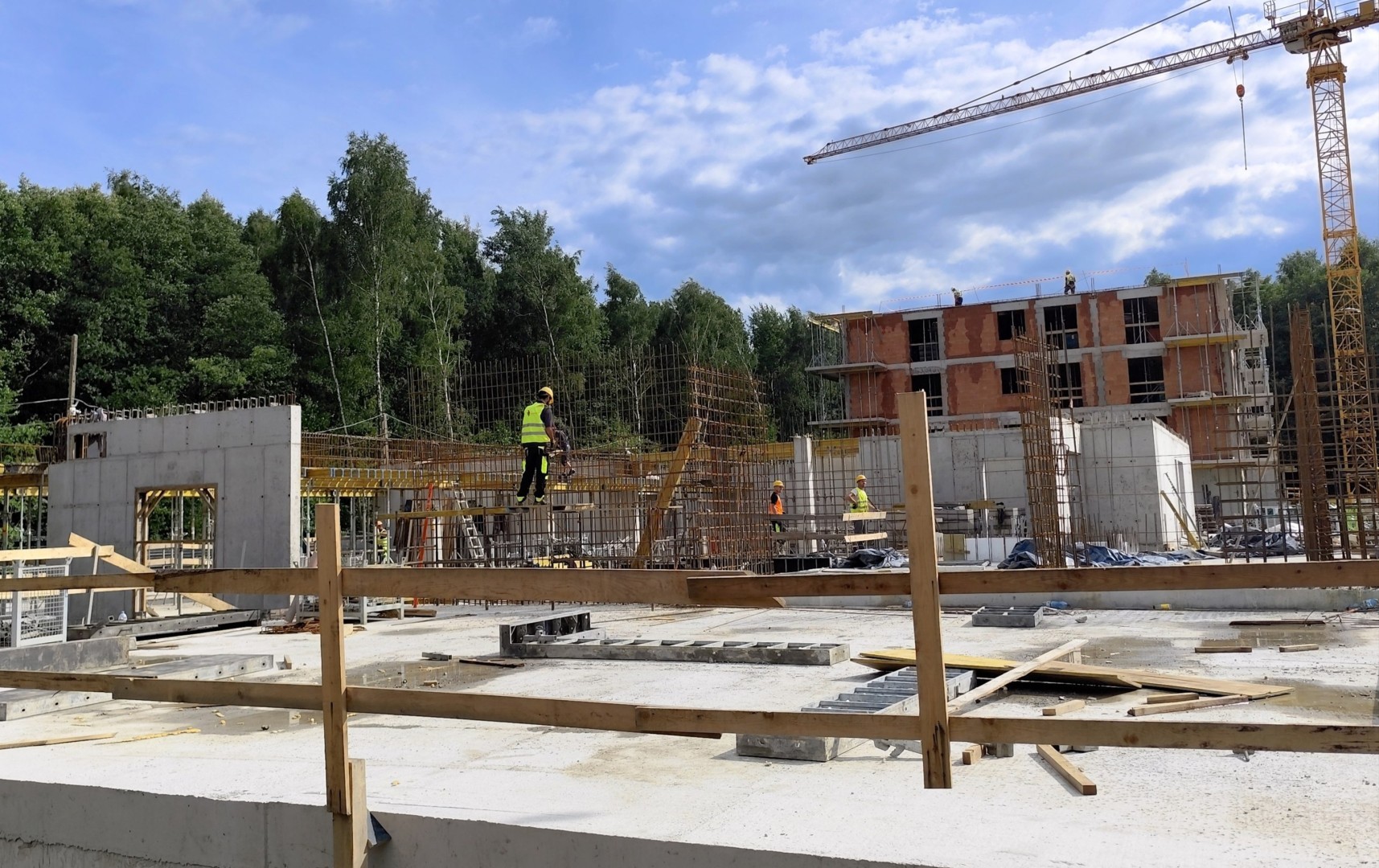 Lato to intensywny czas na budowie naszej inwestycji Osiedle Zielony Nikiszowiec. Prace konstrukcyjne nabierają tempa, a kolejne elementy budynków zyskują swój docelowy kształt. Obecnie realizujemy szalowanie, zbrojenie oraz betonowanie ścian nośnych, belek i słupów parteru.
