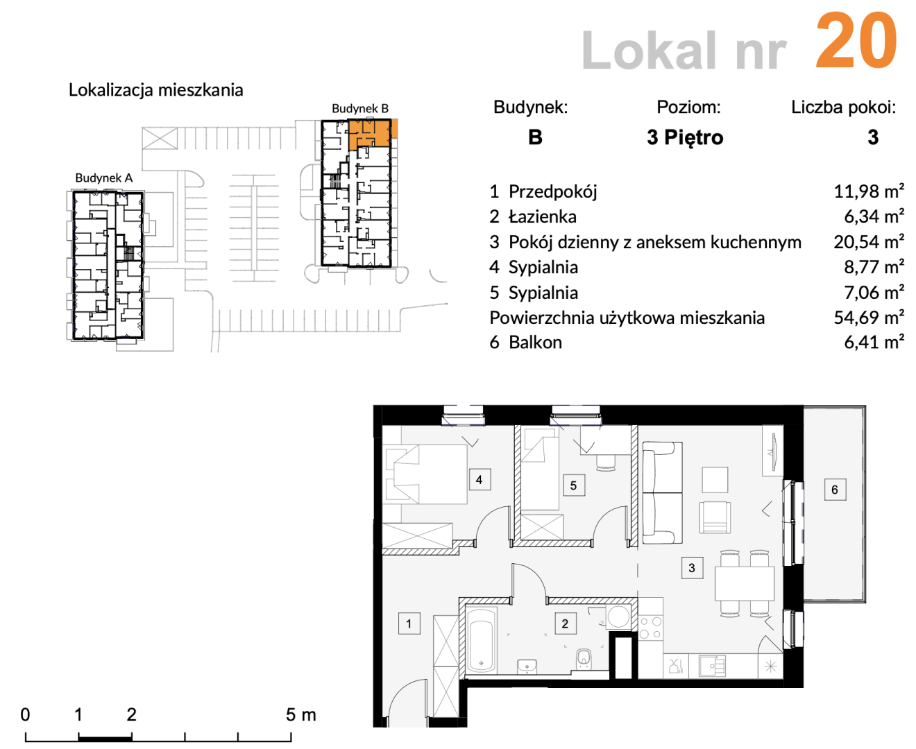 Lokal nr 20: Z metrażem 55,22 m2, ten apartament znajduje się na trzecim piętrze, oferując nie tylko przestrzeń, ale także wspaniały widok na zielone tereny Parku Alfred. Funkcjonalność połączona z estetyką tworzą tutaj wyjątkowe miejsce do życia.