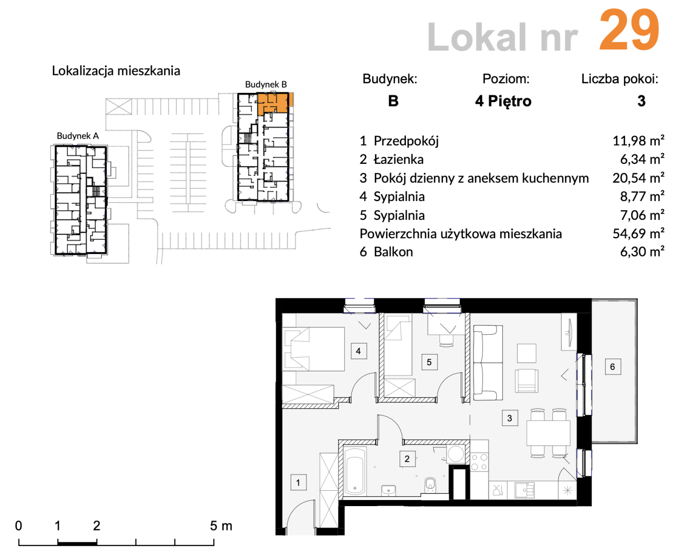 Lokal nr 29: Ostatni, ale nie mniej ważny, to mieszkanie o powierzchni 55,52 m2. Położone na ostatnim 4 piętrze, zapewnia ono nie tylko intymność, ale również widok na zieleń parku. Tutaj każdego dnia można delektować się spokojem i pięknem natury z własnego balkonu.