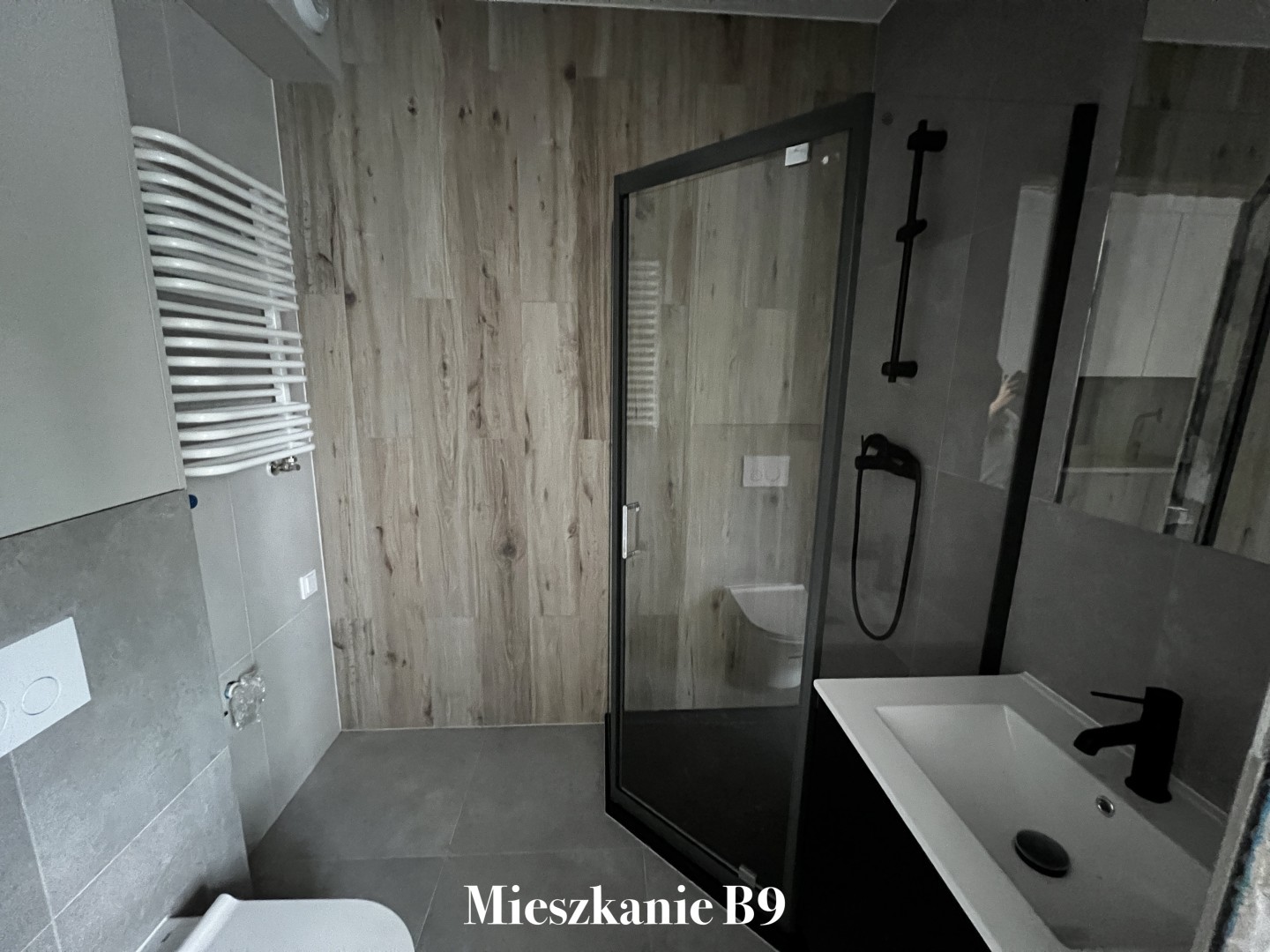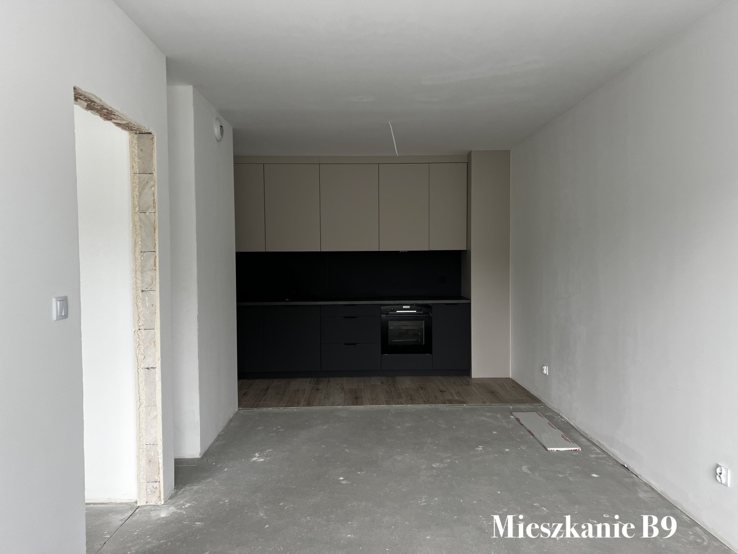 B9: Mieszkanie posiada 2 pokoje i znajduję się na pierwszym piętrze. Metraż wynosi 50,24 m2. Pomimo obecnego etapu wykończenia, już teraz zachwyca swoją elegancją i funkcjonalnością. Posiada jedną odrębną sypialnię oraz wnękę sypialną, co sprawia, że przestrzeń staje się bardziej wszechstronna i przytulna. Z przestronnego ogrodu można cieszyć się widokiem na spokojny dziedziniec, co sprzyja chwilom relaksu i odprężenia.