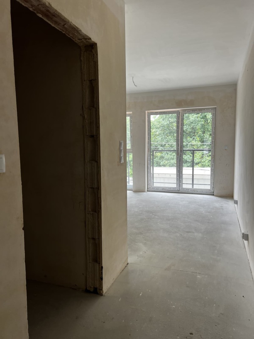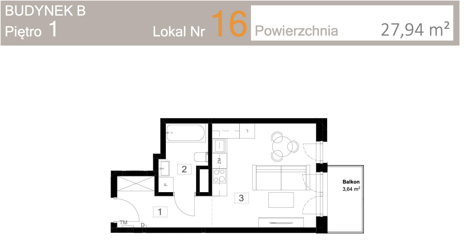 Mieszkanie B16 to przytulne jednopokojowe mieszkanie z wschodnią ekspozycją, które, choć niezbyt jasne z uwagi na drzewa i stronę świata, oferuje wyjątkowy komfort. Panoramiczne okna wpuszczają dużo światła, a balkon o powierzchni około 3,64 m2 pozwala na relaks na świeżym powietrzu. Możliwość wydzielenia niewielkiej strefy sypialnianej (dzięki drugiemu oknu) dodaje funkcjonalności przestrzeni. Łazienka o powierzchni około 5 m2 jest wygodna i dobrze zaprojektowana. Widok z okien na teren zielony, mimo dużej ilości drzew, wprowadza spokój i bliskość natury.