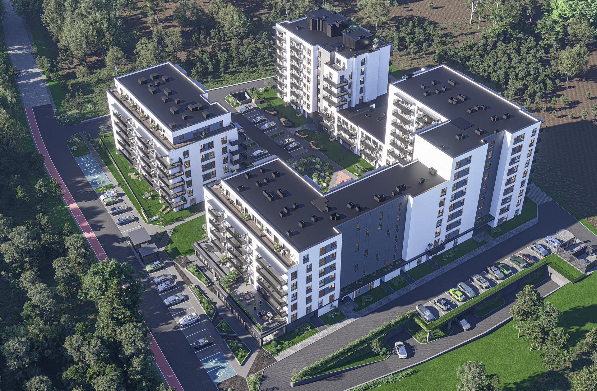 Oferujemy mieszkania z widokiem na zieleń, blisko lasu, a jednocześnie świetnie skomunikowane z centrum. Realizujemy również projekty w dzielnicach takich jak Ligota, docenianych za kameralność i dostęp do parków.